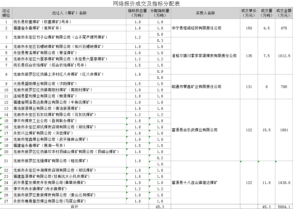| 乐动网页版登录入口名称 | 福建省2017年度煤炭去产能指标交易网络报价成交及指标分配表 |