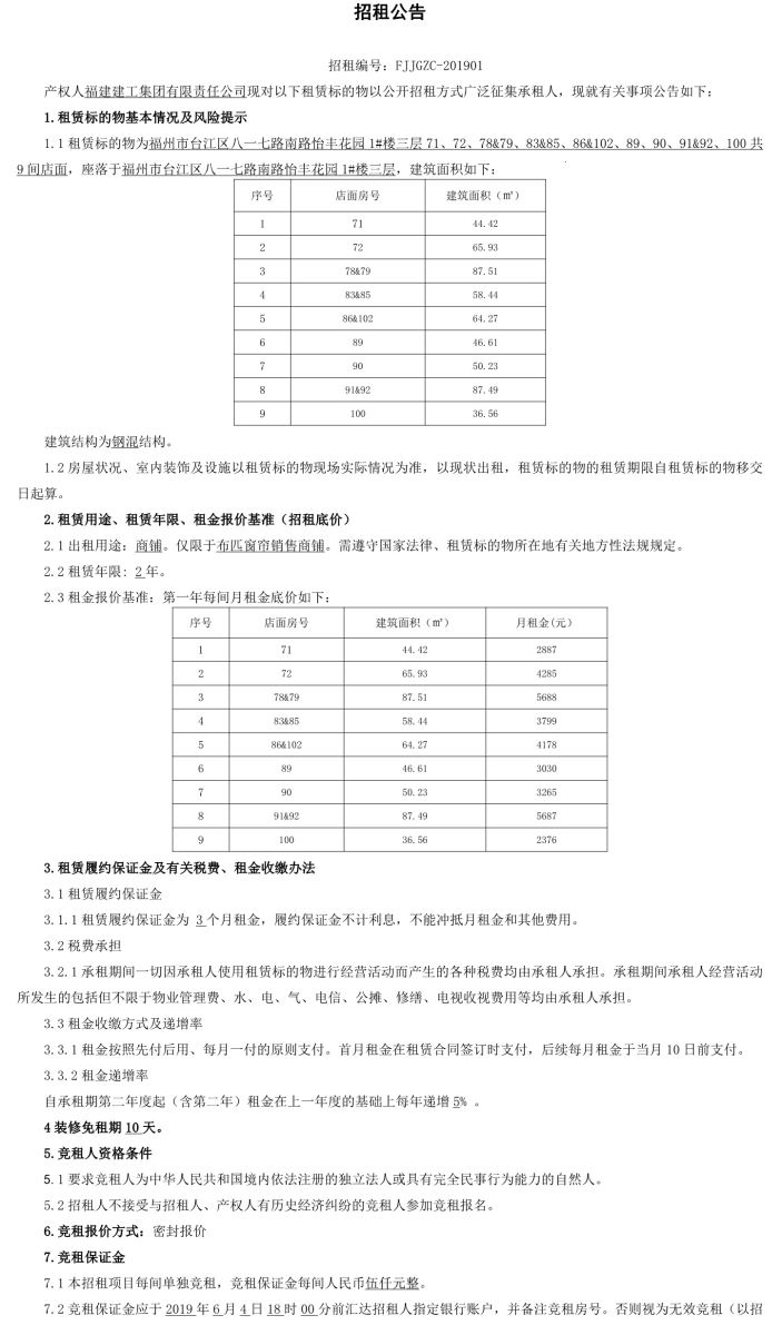 | 名称 | 福建建工集团有限责任公司怡丰布匹市场三层店面招租公示 |