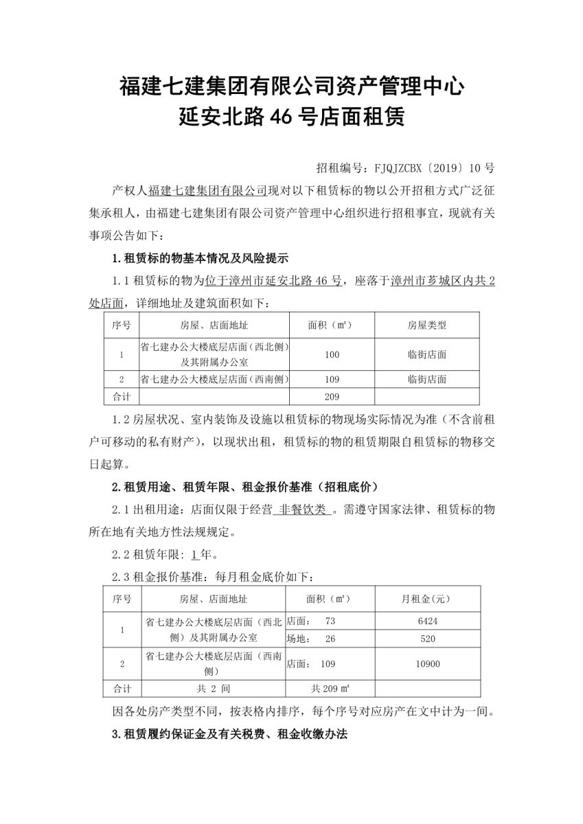 | 名称 | 福建七建集团有限公司延安北路46号店面租赁 |