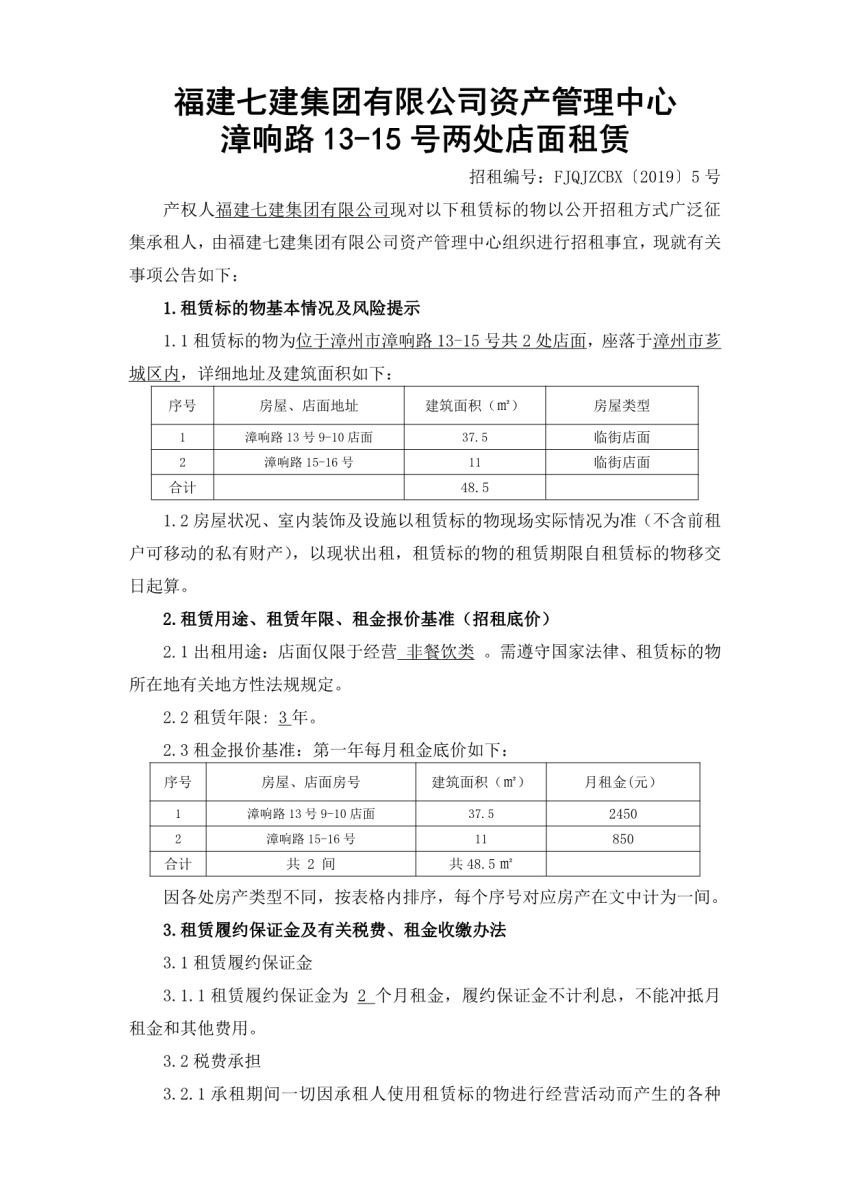 | 名称 | 漳州市漳响路13-15号共2处店面招租公示 |