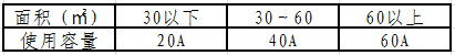 4、提供单相220V电源,使用容量说明如图: