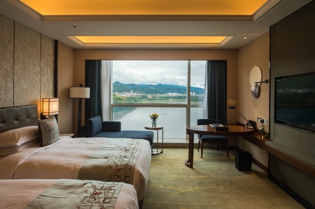 南平雅阁国际大酒店位于延平区朱熹路56号,酒店距离市中心约7公里,高铁北站、夏道大桥、咫尺可达。占地面积约80亩,总建筑面积6.29万平方米,北塔楼14层,南塔楼13层。酒店集客房、餐饮、娱乐、商务、大型会议中心、武夷山水品牌店为一体。拥有各式客房277间,其中江景大床房108间、江景双床房73间、豪华江景大床房30间、豪华江景套房19间、行政江景大床房27间、行政江景双床房8间、行政江景套房3间、家庭江景房9间;涵盖10000平方米全景豪华餐厅包房14个,可容纳190人用餐的西餐厅1个,容纳52位+2包厢的日餐厅1个;容纳68位休闲大堂吧1个;800平方米无柱式国际会议厅1个、680平方米小宴会厅1个,会议室5个;休闲茶艺包房8间、健身房1个和361个停车位的停车场等配套设施。