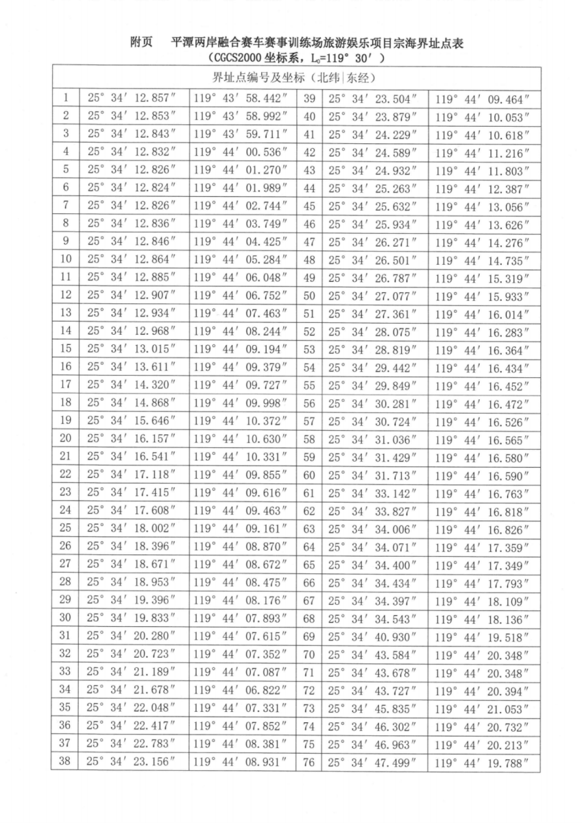 | 名称 | 平潭两岸融合赛车赛事训练场旅游娱乐乐动(中国)海域使用权出让 |