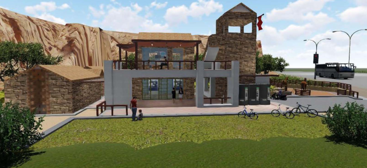 “四合一”旅游驿站的建设以城市主干道和环岛路为依托,在乡村和主要干道交汇处选址建设,集旅游驿站、观景台、厕所、形象宣传为一体的集合驿站。