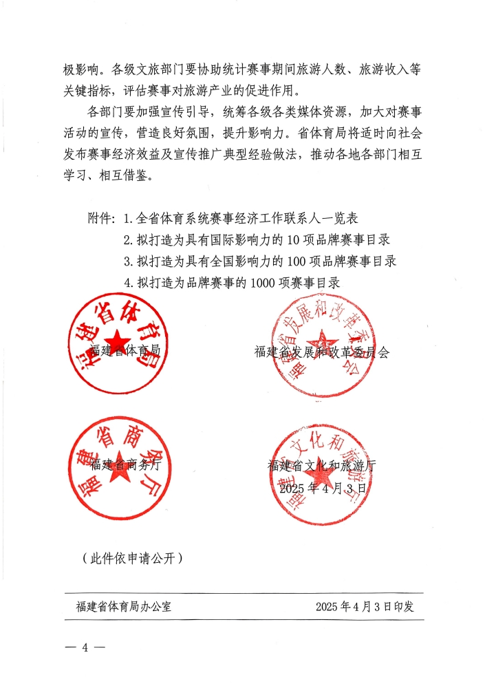 关于实施“十、百、千”八闽名赛培育工程,发展赛事经济、提振赛事消费的通知(闽体〔2025〕78 号)